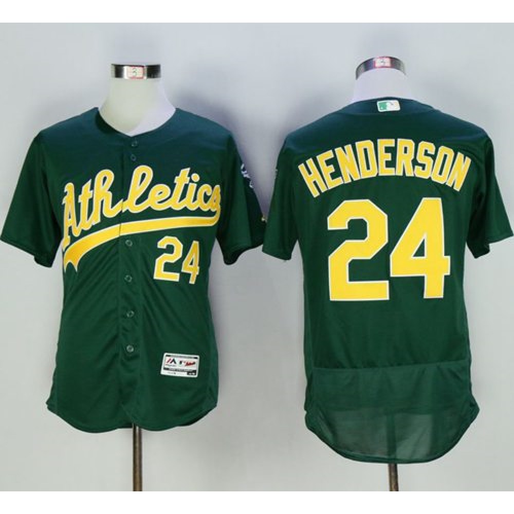 Athletics #24 Rickey Henderson Green Flexbase Authentic Collection Cooperstown Stitched MLB Jersey
