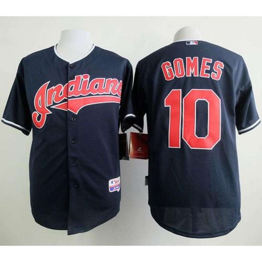 indians #10 Yan Gomes Navy Blue Cool Base Stitched MLB Jersey