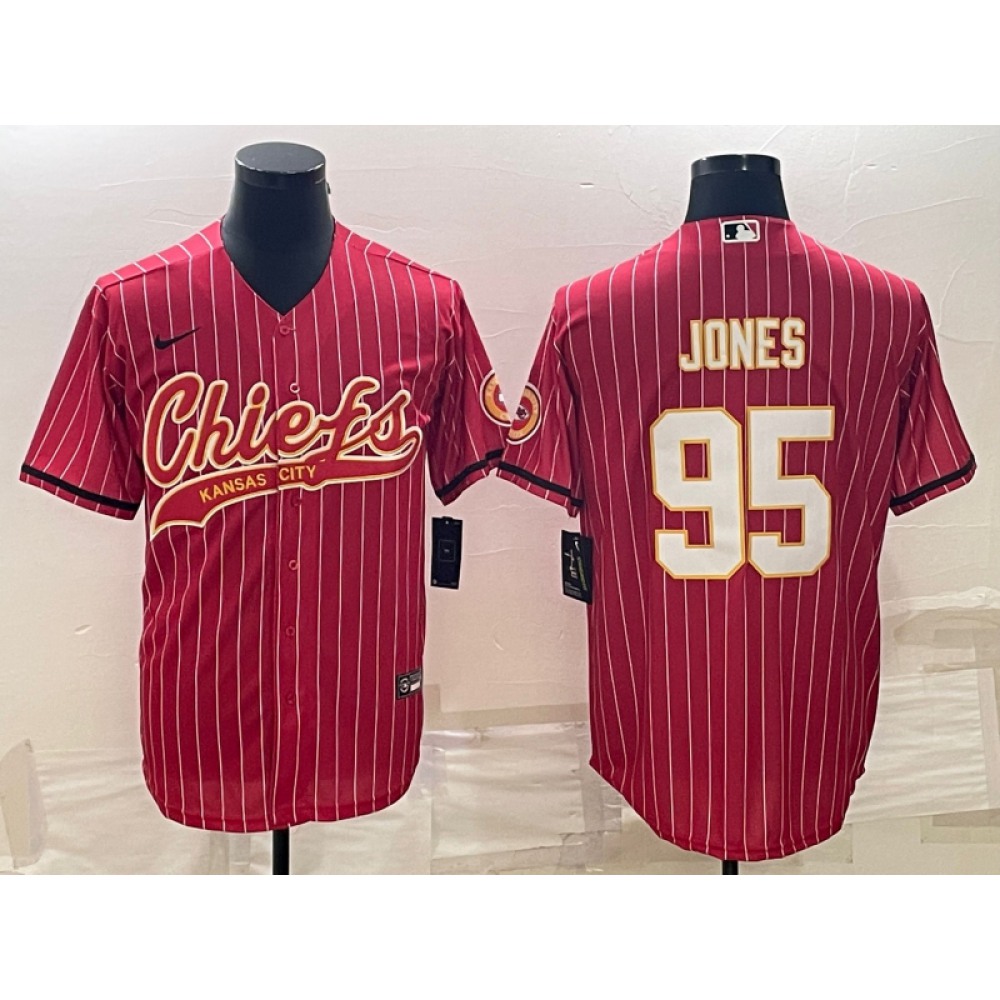 Men's Kansas City Chiefs #95 Chris Jones Red With Patch Cool Base Stitched Baseball Jersey