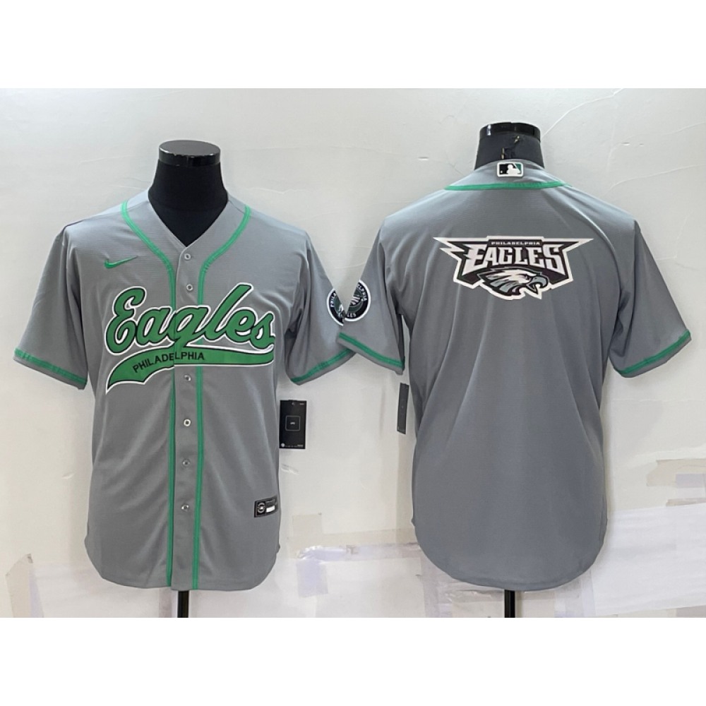 Men's Philadelphia Eagles Grey Team Big Logo With Patch Cool Base Stitched Baseball Jersey
